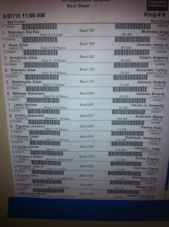 More than 1,500 boxers from the US, Mexico, Canada, Finland, England, Puerto Rico, England and Ireland have met to box for the title of Ringside World Champion and the accompanying title belt. Boxing starts today 11 a.m. CST and below are photos of today's bout sheets.